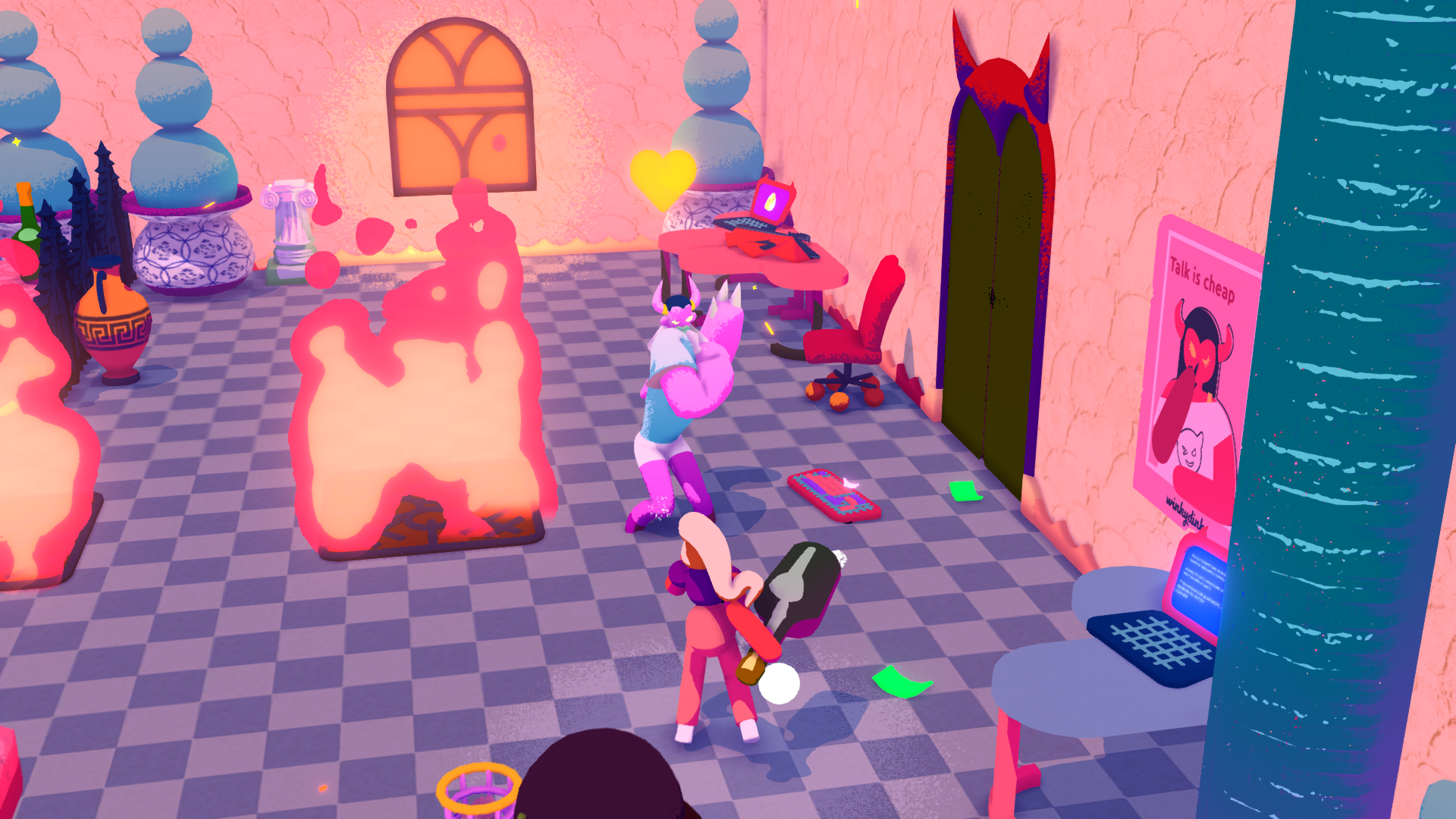 Nick Kaman and Caelan Pollock have been working together in game dev for almost 5 years, based in their home city of Seattle. Inspired by their college years spent living in a madhouse of startup bros, they set out in January 2019 to satirize their rapidly growing and changing city—in video game form, because that’s all they really know how to do. Joined by Joanna Lin, Felix Peaslee, Sam Strick, and Luiz Mello, the project quickly took off and landed Team17 as its publisher. Nearly two years later, the end result is Going Under: a fantastical, yet all-too-real sendoff of startup culture and the world of constantly-changing technology we live in. Plus, it’s a pretty fun game.Features